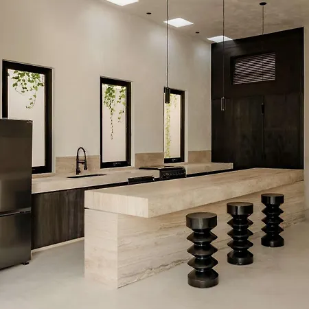 La 4 Bedroom Villa With Rooftop Pool Aldea Zama dispone di una cucina completamente attrezzata con una lavastoviglie e un forno. - ❓
